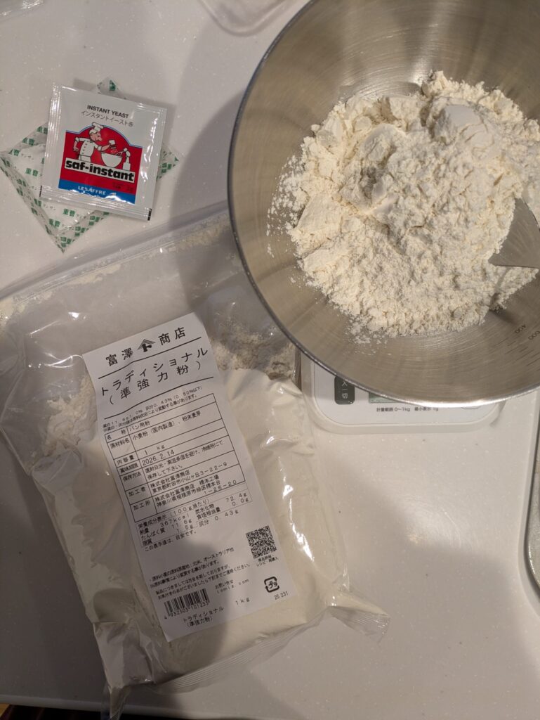 ※レシピを見るとリスドォルという商品を使っていましたが私が買ったのはトラディショナルという商品でした。トラディショナルはリスドォルをベースによりハードなパン向けに小麦を配合した商品だそうです。