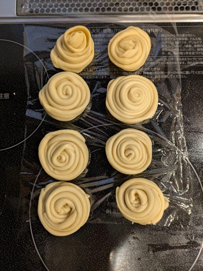 この後は二次発酵を行わず焼くだけだったのですが成形と湯通しに時間をかけすぎたようです。