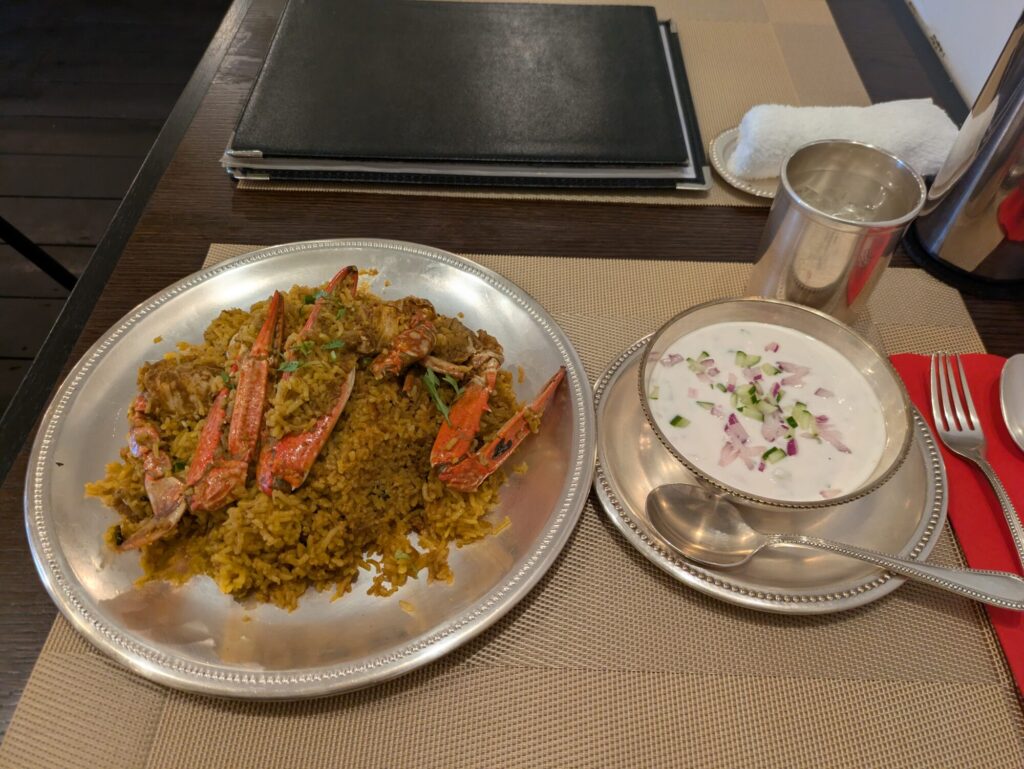 ほおばるとカニとスパイスの香りが鼻腔をくすぐり、ほわほわの長米が口のなかで踊ります。