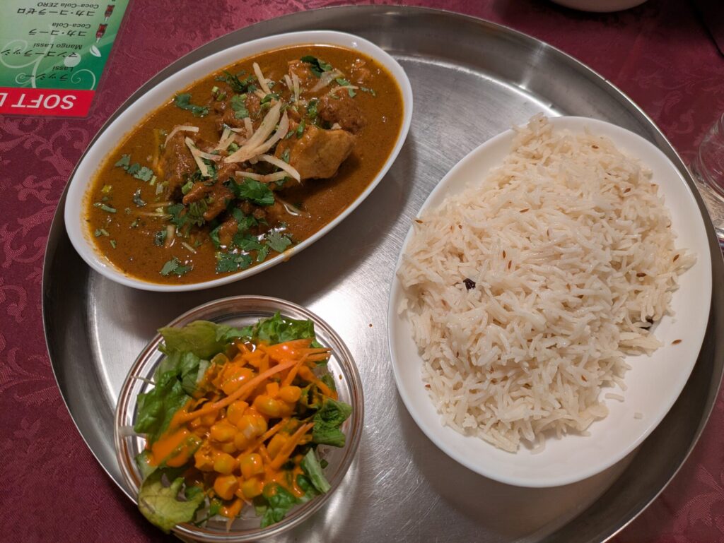 小麦やバターを使わずココナッツやヨーグルトを使ったとろみづけでスパイス感もマイルドになりシンプルな味わい、お米のすすむ一品でした。